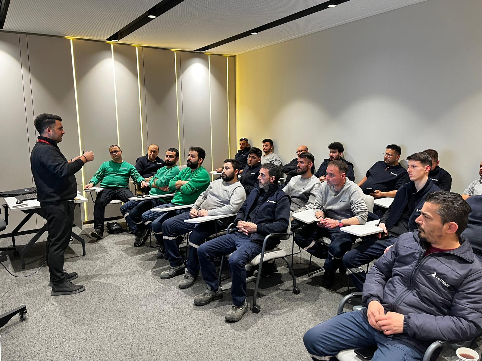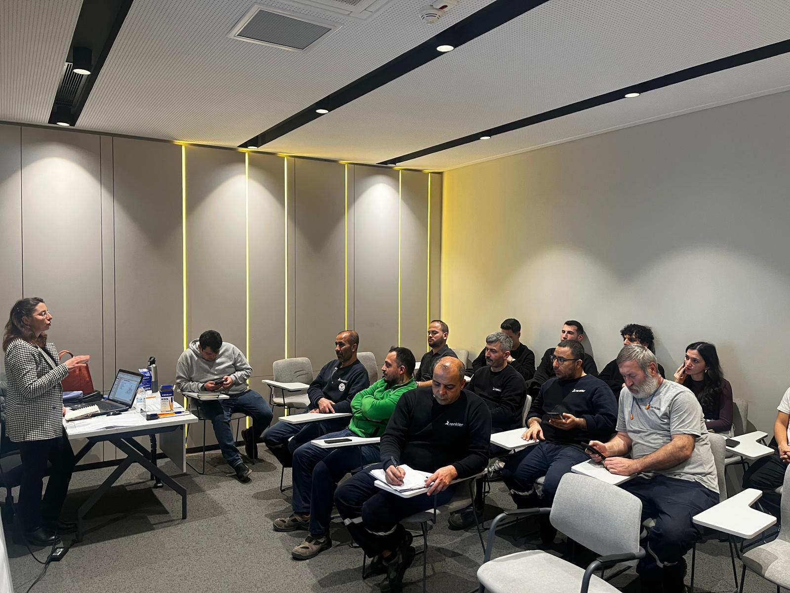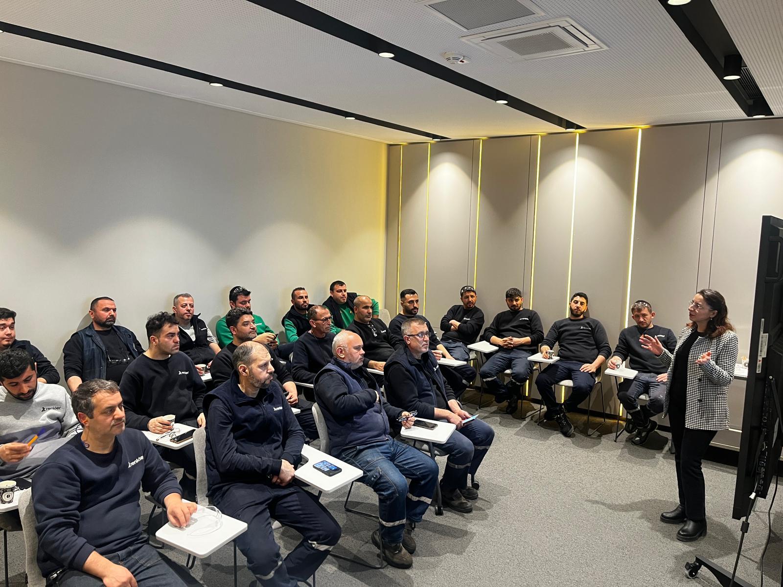 22-29 Ocak 2026 tarihlerinde 11.00-17.30 saatleri arasında Renkler Makina’da gerçekleştirilen eğitime Kaynakhane, Preshane, Talaşlı İmalat, Abkant, Lazer-Punch ve Kalite bölümlerinde çalışan 138 personel katıldı. Katılımcıların yoğun ilgi gösterdiği Teknik Resim Okuma Eğitimi kapsamında teknik resimde temel kavramlar, görünüş alma ve kesit teknikleri, çizgi türleri, ölçülendirme, ölçek kullanımı ve toleranslandırma konuları ele alındı. ISO 2768 standartlarıyla üretime yönelik doğru ve ortak bir teknik dilin önemi vurgulanarak, katılımcıların teknik resim okuma ve yorumlama becerileri güçlendirildi.