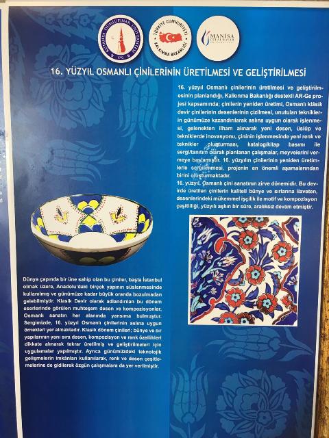 Proje koordinatörü Öğr. Gör. Dr. Muhterem KOÇ tarafından Turgutlu MYO bünyesinde çini karolarının üretiminin gerçekleştirildiği projede, tek parça olarak üretilen 85x45 cm ebatlarındaki eser büyüklüğü ve görselliği ile dikkat çekti. Ayrıca projede klasik döneme ait eserler ile 21. yy eserleri otoriterler tarafından başarılı bulundu.